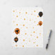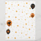 Blij Halloween-illustratie met feestballonnen in zwart en oranje met een spook, een heks, een spin en spinnenweb en jack-o-lantern op een witte achtergrond.