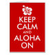 Parodie op Hawaï... Houd Calm en Aloha aan met witte hibiscus bloemvorm. U kunt de achtergrondkleur wijzigen.
