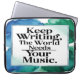 Blijf schrijven, de wereld heeft je muziek nodig laptop sleeve
