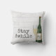 Blijf weg terwijl de fles met wijn op hout zit kussen
