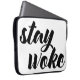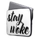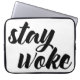 Wenst u dat andere mensen op de hoogte zouden blijven van wat er gebeurt in hun buurt en de wereld in het algemeen? Deze moderne laptop met een scripted typografische vormgeving met de woorden "Blijf woke" stuurt dat exacte bericht uit. Pas dit ontwerp aan door uw eigen tekst toe te voegen.