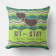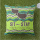 Ah, zomerdiner buiten en vermaak in de tuin of het poolgebied is onze favoriete tijd van het jaar. Deze kussen in de openlucht komen uit het "Kom zitten"-collectie voor buitenshuis, dat uitsluitend is ontworpen door PAWSitivelyPETrageous.com. Op de voorzijde is een leuke cartoon wiener-achtige hond afgebeeld met een uitnodigende boodschap: "Blijf weg je troebels" met een vrolijke afdruk in turquoise blauw, peridot groen en chocoladebruin met golven. De achterkant heeft dezelfde druk, een grote golvende chocoladegrens aan de linkerkant en je monogram in een grote hondenpootdruk.
