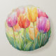 Bloeiende Waterverf Spring Tulip Garden Rond Kussen