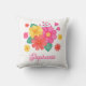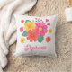 Pas dit kussen aan met jouw naam. Het beschikt over een origineel, modern bloemontwerp met roze, oranje en gele bloemen.