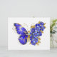 Sieraden, blauw, saffier, sprankelende bloem vlinder met vleugel versierd met blauwe, kostbare bloemen met gouden bladeren op witte achtergrond.
