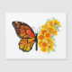 Oranje, gedetailleerde monboogvlinder met vleugel versierd met gele, levendige Californische papaver op witte achtergrond.