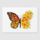 Oranje, gedetailleerde monboogvlinder met vleugel versierd met gele, levendige Californische papaver op witte achtergrond.