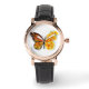 Oranje, gedetailleerde monboogvlinder met vleugel versierd met gele, levendige Californische papaver op witte achtergrond.