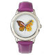 Oranje, gedetailleerde monboogvlinder met vleugel versierd met gele, levendige Californische papaver op witte achtergrond.