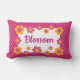 Gepersonaliseerd roze geruite patroon, gestikte bloemen, de lente gewaagde kleuren. Geel en fuchsia roze bloesem bloesem ontwerp lijst. Kinder kamer decor, meisjes kinderkussen met naam.
