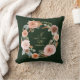 "Floral Blush Peony Leaves Waterverf Forest Green Bruiloft of Jubileum gepersonaliseerd Sierkussen." Gepersonaliseerd cadeau voor een verloving cadeau, bruiloft of jubileum. Uw monogrammen (of namen) en trouwdatum zijn geplaatst in een elegante, waterverf krans van aardetoon, warme gedempte kleuren van blush roze, abrikoos, perzik, roest, mos groen met een donkere jager, bos groene achtergrond voor een modern, trendy kleurenpalet. Kunst van internationaal erkende kunstenaar en ontwerper, Audrey Jeanne Roberts, copyright.