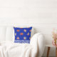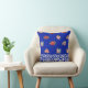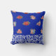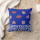 Deze omkeerbare kussen tonen bloemen en kant op een koninklijke blauwe achtergrond. Aan de andere zijde staan bruine en witte strepen.
