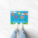 Grote kleurrijke bloemen tegen een heldere blauwe lucht in een leuke kinderillustratiestijl voor kinderspeelhuisje.
