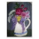 Het origineel is geschilderd op een ovaal bord. Oude witte glazen pitcher met een boeket bloemen - rozen, maisen, koningin Anne's kant, slagtercups en wisteria.