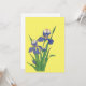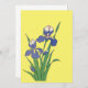 bloemontwerp met bloeiende paarse iristuinbloemen op een felgele achtergrond. Geweldig ontwerp voor Pasen of om een mooie lentedag te vieren.