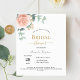 Een chique witte achtergrond. Versierd met een rozen gouden en blozend roze bloemblaadje, rozen bloemblaadjes en watergekleurde eucalyptusbladeren, takjes, groen en een nepgouden tak. Personaliseer en voeg de naam van de bruid toe om te zijn en feestdetails. Zwarte en goudkleurige letters. 1 vel = 1 uitnodiging afgedrukt rand tot rand.