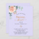 Een trendy violette, lavendelkleurige achtergrond. Versierd met een rozen gouden en blozend roze bloemblaadje, rozen bloemblaadjes en groene watergekleurde eucalyptusbladeren, takjes, groen en een nepgouden tak. Personaliseer en voeg de naam van de bruid toe om te zijn en feestdetails. Zwarte en goudkleurige letters. 1 vel = 1 uitnodiging afgedrukt rand tot rand.