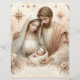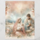 Dubbelzijdig papieren vel met de Baby Jesus, Mary en Joseph met bloemenelementen vormen de subtiele tinten van deze waterverf illustratie. Perfect voor alle soorten papercraft van scrapbooking tot junk journaling.