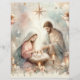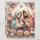 Dubbelzijdig papieren vel met de Baby Jesus, Mary en Joseph met bloemenelementen vormen de subtiele tinten van deze waterverf illustratie. Perfect voor alle soorten papercraft van scrapbooking tot junk journaling.