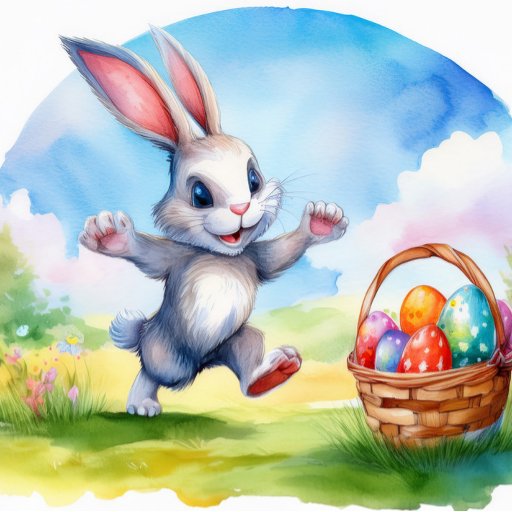 Waterverf beschilderde schattige konijntje, elegant versierd met delicate bloemenelementen en prachtig versierde eieren. Prachtig paascadeau!