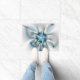 Unieke elegante fantasiebloem met 3D-effect. Blauwe en grijze pastelkleuren. Ontwerp voor uw deurmat en meer.