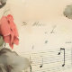Bloemenmuzieknoten patroon rode schil en stok behang