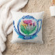 Een theepot ontwerp beschikt over kleurrijke bloemen binnen. De levendige tinten roze, geel en groen vallen op, waardoor een opvallend contrast ontstaat met de blauwe theepot.