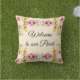 Welkom gasten op je veranda met deze roze florale kussen. Deze kussen werden gemaakt van een pastelgrens. Pas dit kussen aan met je eigen woorden of koop zoals getoond met "Welkom bij onze Porch" aan de voorkant en op de achterkant "Home lief home"