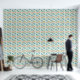 Moderne waterverf pastelbloem in roze en blauw met strepen op de achtergrond.