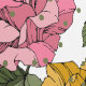 modern bloemmotief in roze en geel met stippen op witte achtergrond.
