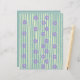 Paars bloemig ontwerp scrapbookpapier met fijne gele lijnen tegen een groene achtergrond voor papierambachten