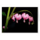 Prachtige roze bloederende hartbloemen op deze groet- of briefkaart.