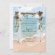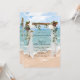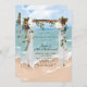 Het ontwerp is voorzien van een gekleurd strand en een grijs bloemelement in tinten groen geel en wit, dat een strandoceaanlandschap bedekt met witte bladerdak en witte marsala-bloei en een kalligrafiescript of een type schrift. Geweldig voor je trouwfeesten!