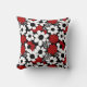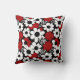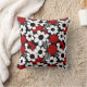 Rode, zwarte en witte bloemen grillige betegelde patroonkussen.