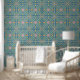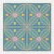 Bloemmotief pauw blauw geel en roze, geïnspireerd op Marokkaanse kleuren Fake tegel effect