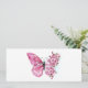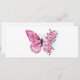 Langwerpige opstelling van roze vlinder met roze Japanse kersbloesems op witte achtergrond.