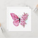 Langwerpige opstelling van roze vlinder met roze Japanse kersbloesems op witte achtergrond.