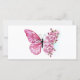 Langwerpige opstelling van roze vlinder met roze Japanse kersbloesems op witte achtergrond.
