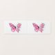 Langwerpige opstelling van roze vlinder met roze Japanse kersbloesems op witte achtergrond.
