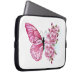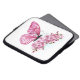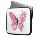 Langwerpige opstelling van roze vlinder met roze Japanse kersbloesems op witte achtergrond.
