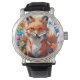 Bloemvos Mooie esthetische rode vos met kleurrijke bloemen kunst.