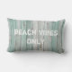 Bieken gooien kussens bevat een blauw gekleurd houtpatroon dat lijkt alsof het is gered uit een weersgebonden strandhuisje met aanpasbare tekst van alleen strandvibes in een wit lettertype in nood.