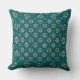 Een Sierkussen of een kussen met een patroon van gestileerde Cream Flowers in twee formaten, op een donkere Blauwgroen achtergrond; van het "Oerwoud drums"-collectie "Posh & Painterly".
