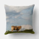 Foto's gooien kussens met een Blonde d'Aquitaine-koe naar de kijker onder een aantal wolken in een weide in de regio Dordogne in Frankrijk.