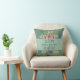 "Bloom waar je bent geplant" is het bericht aan de voorkant van deze inspirerend kussen. De boodschap bevindt zich in het midden van een lichtgroene banner die is omgeven door zachte roze, crème en blauwe bloemen, met een aanraking van krimpen en goud. Het afbeelding wordt geplaatst op een middelgrote blauwgroen groene achtergrond. De achterkant van de kussen heeft een tweede bloem afbeelding, zonder de tekst.