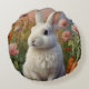 Dit charmante ronde kussen beschikt over een grillige paashaas omringd door levendige bloemen, waardoor je een frisse en feestelijke touch aan je voorjaarsdecor toevoegt.