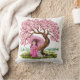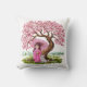 Voeg een gezellige en charmante touch toe aan uw ruimte met dit prachtige werpkussen met een klein meisje in een kimono en haar puppy onder een kersenbloesemboom.