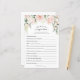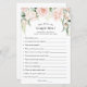 Wie kent het koppel het beste? Bruidsfeest spelkaart met een waterverf cascade van groen en blozende bloemen.