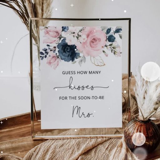 Blozend bloemendecor in het navy met hoeveel kusse poster