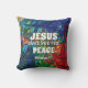 Een stijlvolle inspirerend CHRISTELIJKE PILLOW. Het ontwerp shows BLUE, GROEN en RED abstract patroon met een inspirerend Christelijk bericht: JESUS GEEFT U REAL PEACE (MAN) - gebaseerd op Philippians 4:6. De verwijzing van de Manuscript is .